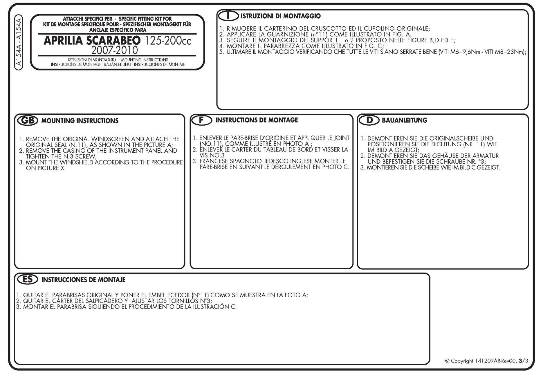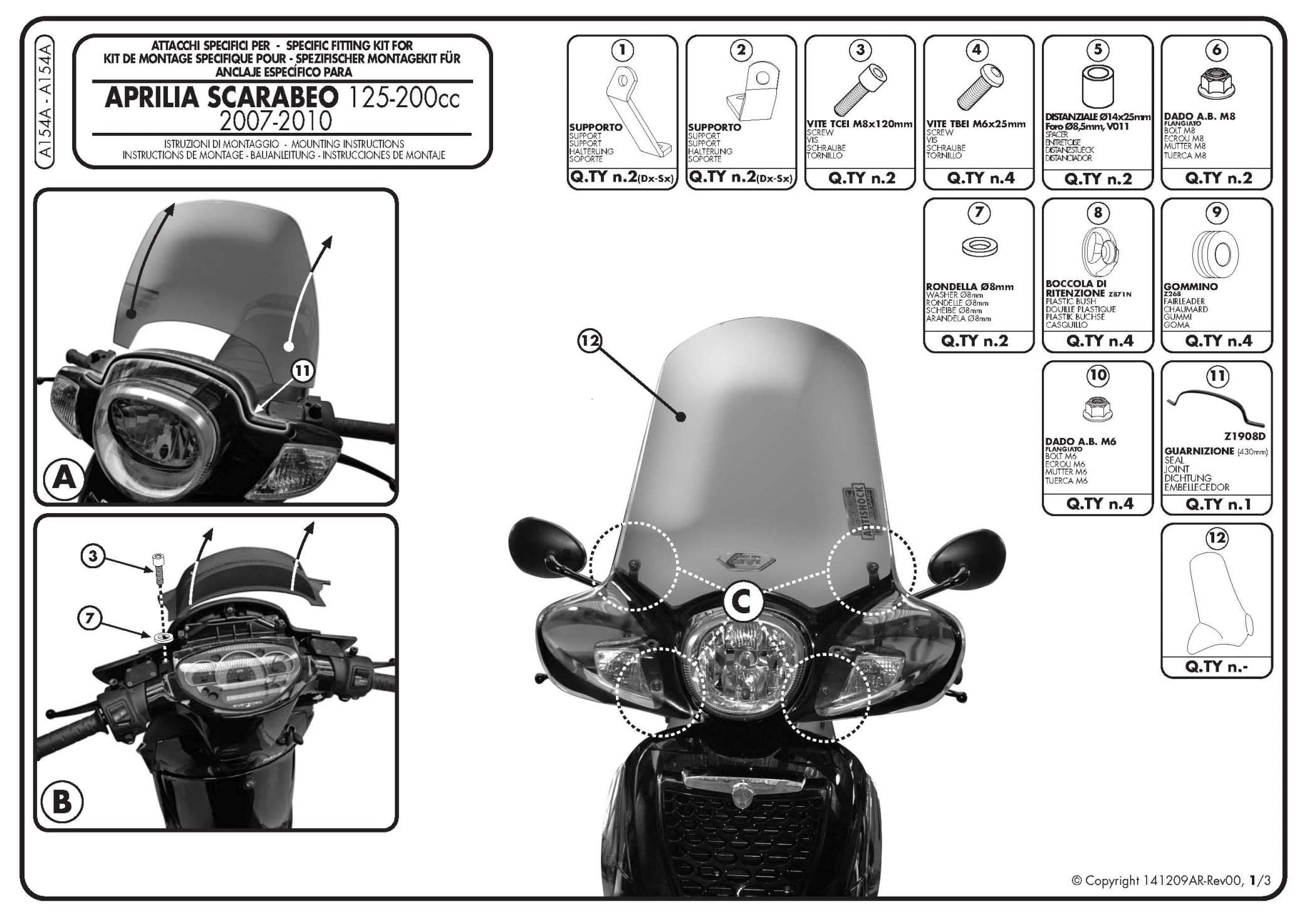 Givi’s 154A Windshield is made specifically for Aprilia Scarabeo 200 (2007-2011).