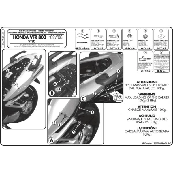 GIVI’s 166FZ Monorack Sidearms are made specifically for Honda VFR800 Interceptor (2002-2011).