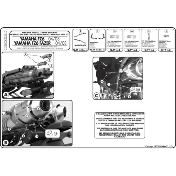GIVI’s 351FZ Monorack Arms are made specifically for Yamaha FZ6 and FZ6 600 Fazer (2004-2011).