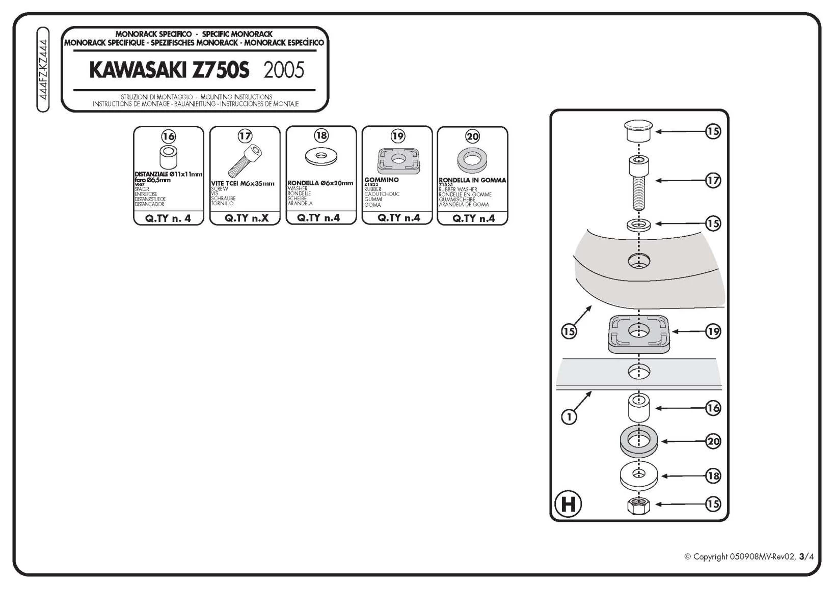 GIVI’s 44FZ Monorack Arms are made specifically for Kawasaki Z750S (2005-2007).