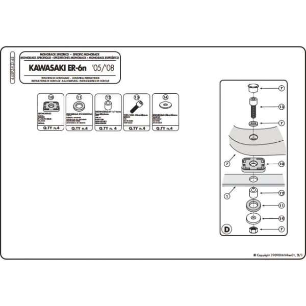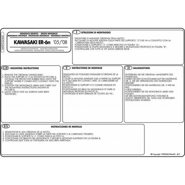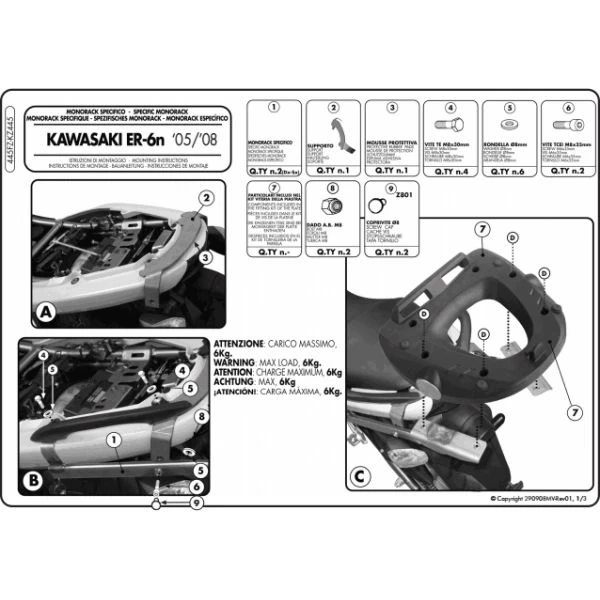 GIVI 445FZ Monorack Arms are made specifically for Kawasaki ER-6N and ER-6F 650 (2005-2008).