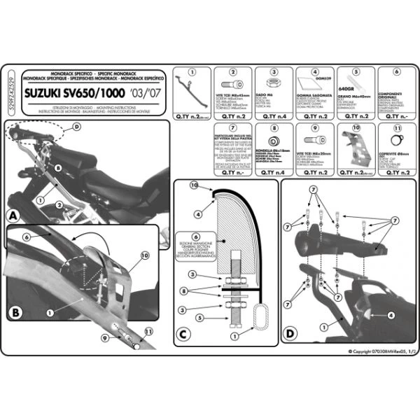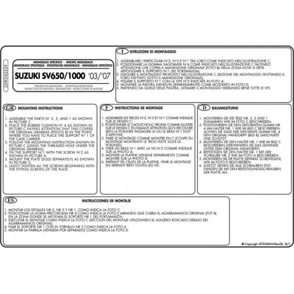 GIVI 529FZ Monorack Arms are bike specific arms to fit Suzuki SV650 (2003-2011) and SV1000 (2003-2009).