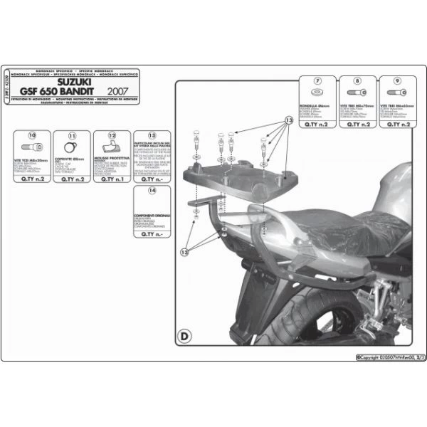 GIVI 539FZ Monorack Arms are made specifically for Suzuki GSX 650F (2008-2011) and GSX1250F 2011.