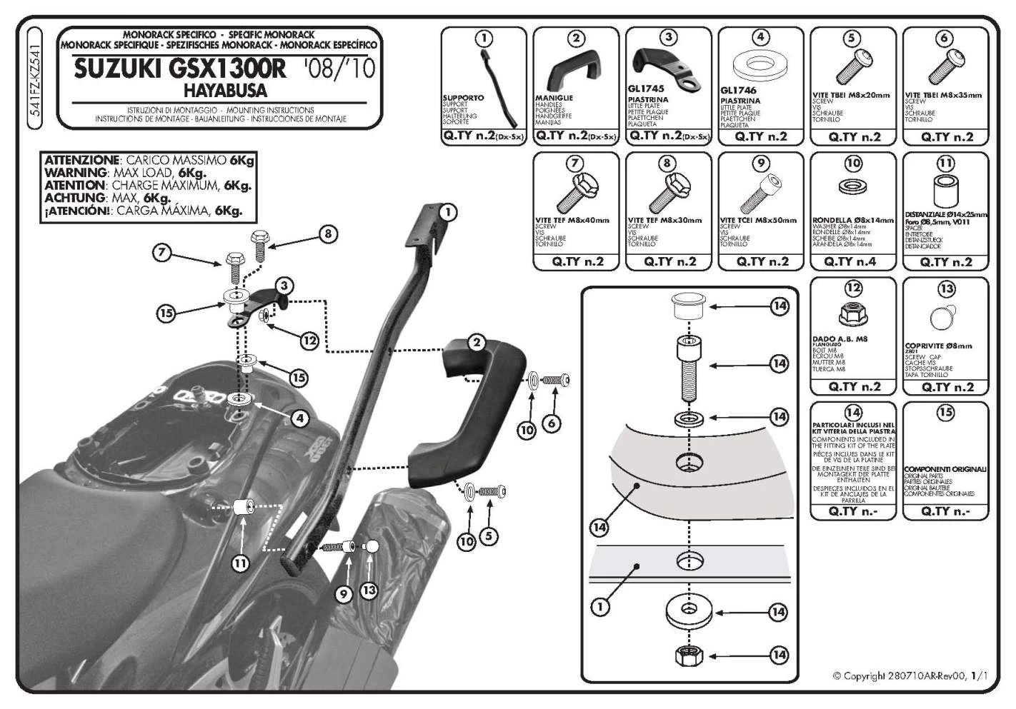 GIVI 541FZ Monorack Arms are made specifically for Suzuki GSX1300R Hayabusa.