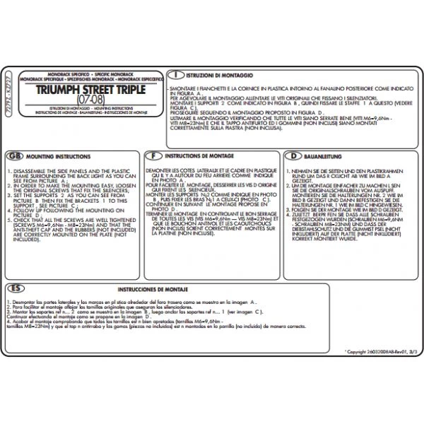 GIVI’s 727FZ Monorack Arms are made specifically for Triumph Street Triple 675 (2007-2012).