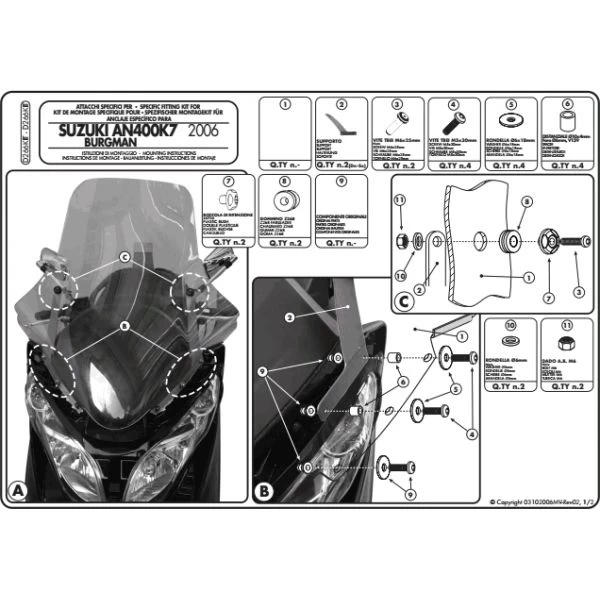 Givi D266Kit Windshield Fitting Kit For Suzuki AN400 ’07-up