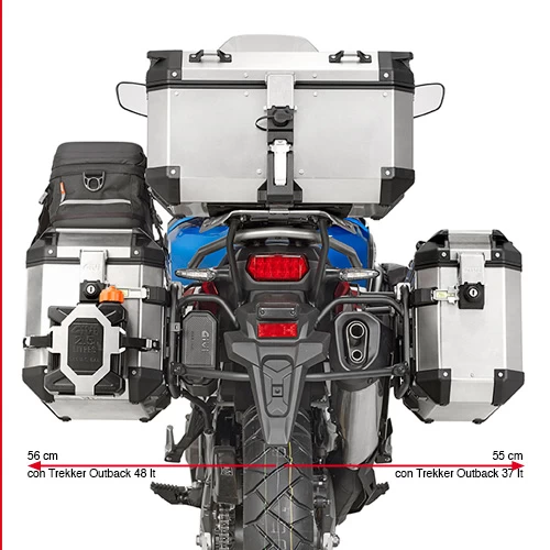 GIVI PL1161CAM Pannier Rack is a bike specific tubular side case holder designed to take GIVI Trekker Outback cases only to a Honda CRF 1000L Africa Twin. All the parts needed to mount the PL1161CAM pannier rack are included. The Trekker Outback side cases come in two sizes 37 Ltr and 48 Ltr. Also with the Trekker Outback cases you have a colour option of silver or matt black.