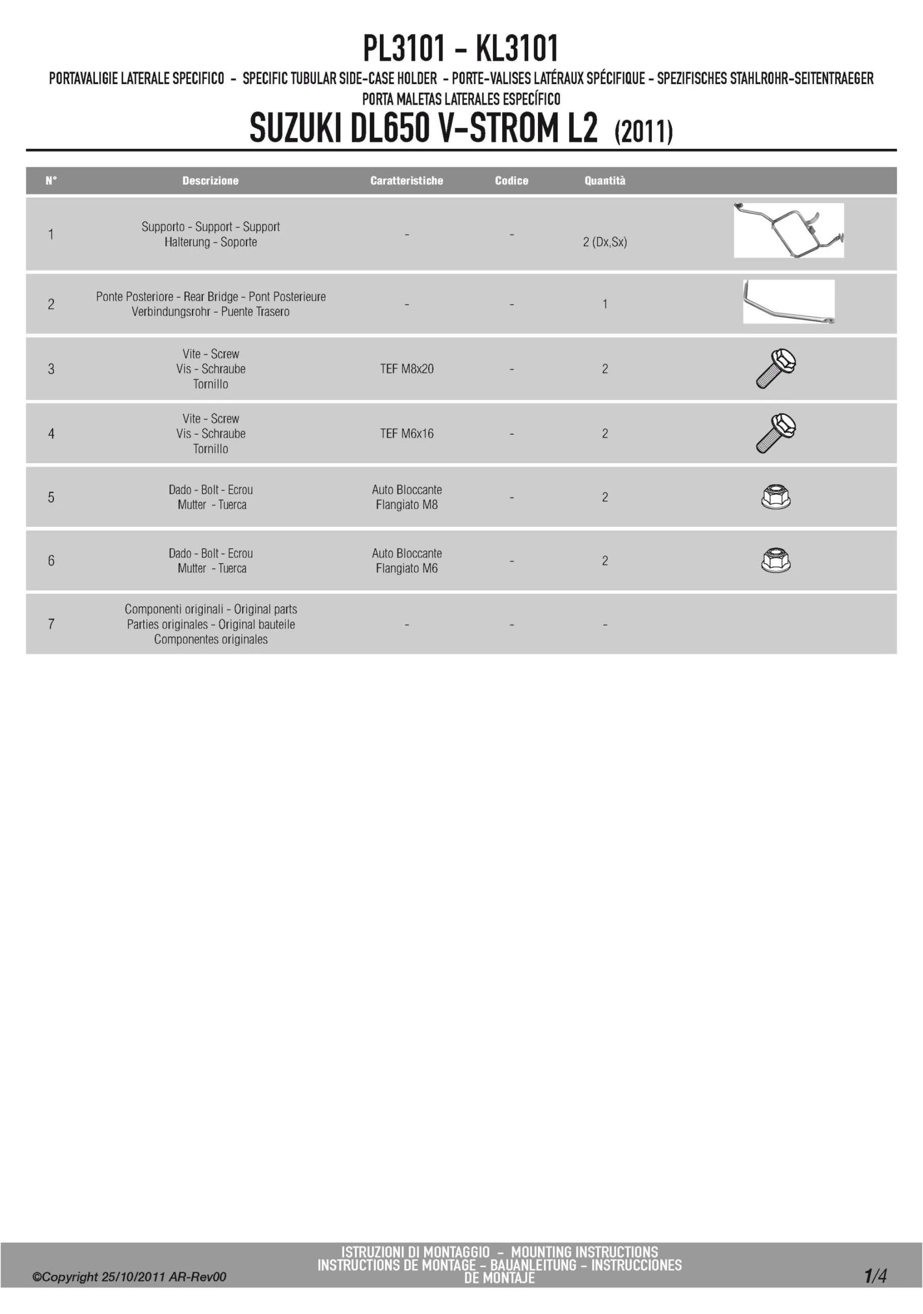 Givi PL3101 Sidecase Hardware For Suzuki DL650 V-Strom ’12-’13