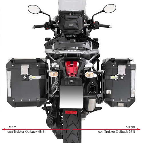 GIVI PL6408CAM Pannier Rack is a bike specific tubular side case rack designed to take GIVI Trekker Outback cases. The Trekker Outback side cases come in two sizes 37 Ltr and 48 Ltr. Also with the Trekker Outback cases you have a color option of silver or matt black.