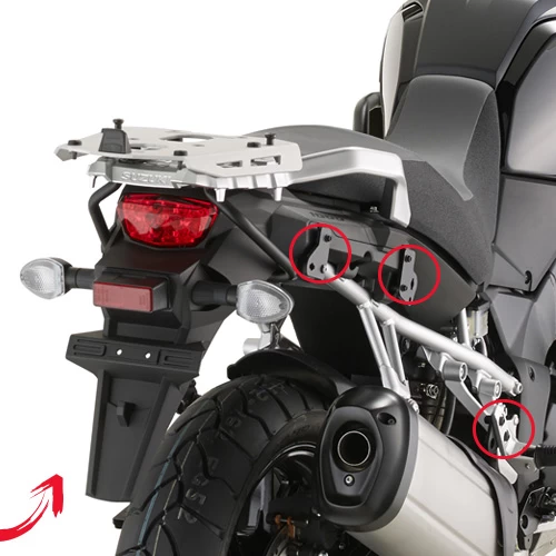 GIVI’s PLR3105 Pannier Rack is designed to fit motorcycle Suzuki DL 1000 V-Strom (2014-current). As you can see from our PDF fitting instructions, this easy to fit tubular pannier rack will take two Side Cases. The PLR3105 Pannier Rack can be fitted independently from, or in conjunction with a GIVI Top Case Rack.