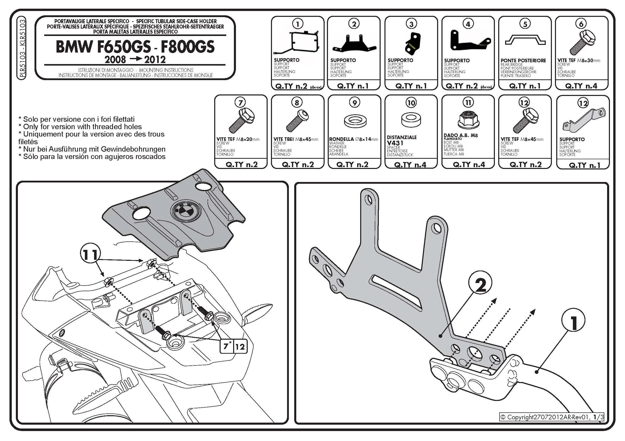 Givi PLR5103 Sidecase Rack is made specifically for BMW F650GS & F800GS (2008-current) / F700GS (2013-current).