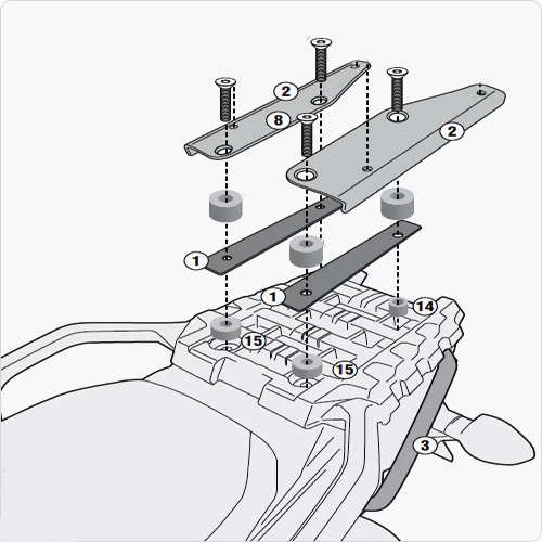 GIVI’s SR3105M Rear Rack is a bike specific rack for the Suzuki DL 1000 V-Strom (2014-2016). It is designed to take the GIVI Monolock top boxes only and comes complete with a GIVI Monolock plate. The SR3105M Rack installs quickly using simple hand tools. No welding or cutting of existing frame or body parts required. Please note that the maximum load allowed is 6 kg.