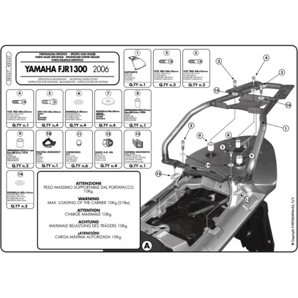 The kit is designed to take GIVI Monokey Top Box which have a larger capacity than the Monolock Top Box. All parts needed to mount the SR357 Rear Plate are included. With this plate you do not have the weight restriction as with the .