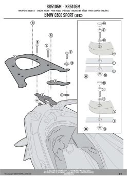 GIVI SR5105M Monolock Top Case Rack is a bike-specific rack to fit BMW C 600 Sport (2012-2015). The kit is designed to take GIVI Monolock Top Boxes only, All parts needed to mount the GIVI SR5105M Rear Plate are included. Installs using simple hand tools. Monolock in nylon included.